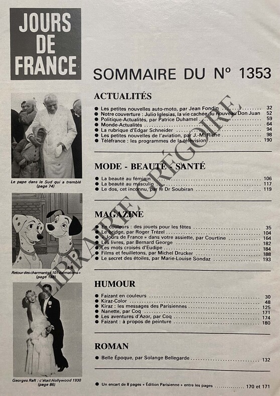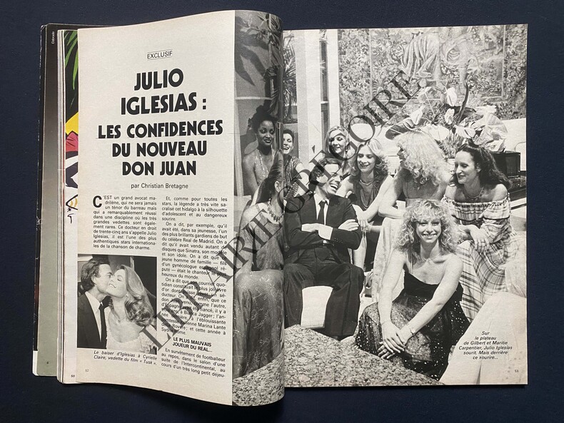 JULIO IGLESIAS EN COUVERTURE-JOUETS/6P-JULIO IGLESIAS: LES CONFIDENCES DU NOUVEAU DON JUAN/DALIDA/6P-CES DIABLES VERTS!/SAINT ETIENNE HAMBOURG/PLATINI/4P-B.B. AUX ENCHERES/2P-ITALIE: L'IMMENSE DETRESSE/TREMBLEMENT DE TERRE/10P-CHARLES N'A PAS OUBLIE EDDY/2P-GEORGES RAFT: LE "MAUVAIS GARCON" DES ANNEES TRENTE/BORSALINO/3P-LA RUBRIQUE D'EDGAR SCHNEIDER/DALIDA-UNE UN PEU FROTTEE