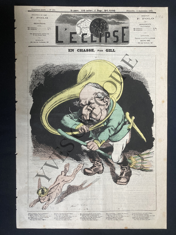 4 PAGES IN FOLIO-COUVERTURE COULEURS PAR GILL "EN CHASSE"/ROUHER/COR DE CHASSE-