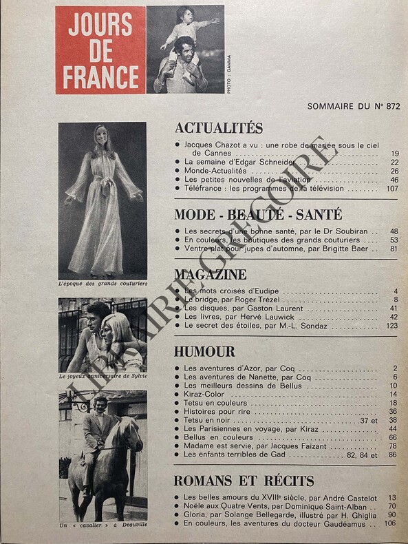 124 PAGES-EN COUVERTURE ROGER VADIM ET SA FILLE VANESSA-DEAUVILLE/4 PAGES/GAINSBOURG-CE TRES BON PAPA: VADIM/4P-MARGARET ET TONY HORS PROTOCOLE-SOUS LE REGARD DE GRACE LE BAIN DE CAROLINE-BON ANNIVERSAIRE, SYLVIE-LES BOUTIQUES DES GRANDS COUTURIERS/11P