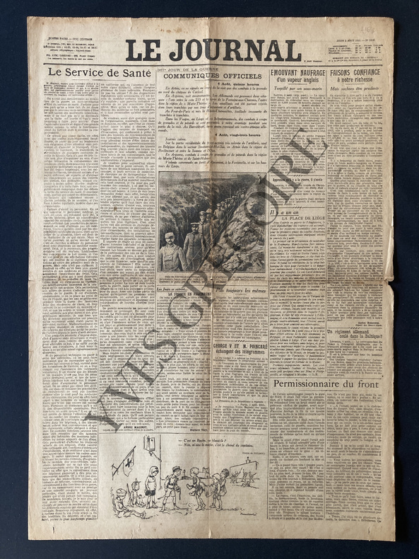 4 PAGES-LE SERVICE DE SANTE PAR ANDRE MAGINOT-EMOUVANT NAUFRAGE D'UN VAPEUR ANGLAIS TORPILLE PAR UN SOUS MARIN/RAUZA-FAISONS CONFIANCE A NOTRE RICHESSE MAIS SACHONS ETRE PRUDENTS PAR ANDRE HONNORAT-GEORGE V ET M.POINCARE ECHANGENT DES TELEGRAMMES-DESSIN DE POULBOT-MARIAGE D'ANARCHISTES A MELUN/KIBALTCHICH/BANDE A BONNOT-LA LUTTE POUR VARSOVIE