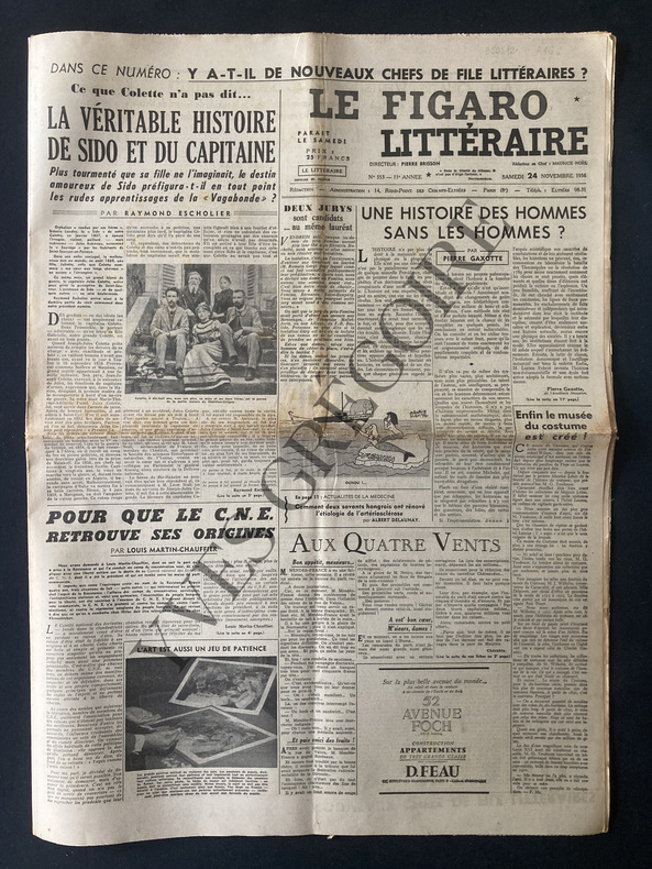 14 PAGES-EN UNE: CE QUE COLETTE N'A PAS DIT.LA VERITABLE HISTOIRE DE SIDO ET DU CAPITAINE/PAR RAYMOND ESCHOLIER/PHOTO/SUITE P5 ET P7/5 PHOTOS-EN ECOUTANT "LE FOU CHANTANT" GAGNER LA GUERRE DE LA FLEUR BLEUE/PAR GEORGES RAVON/PHOTO