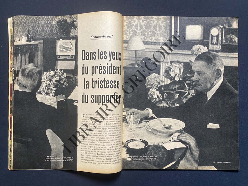 72 PAGES-GRACE DE MONACO EN COUVERTURE-DECES DE JEAN MARY AUX 24 HEURES DU MANS/2P/3 PHOTOS-DANS LE DUEL TEBALDI-CALLAS UN SEUL VAINQUEUR: LA GRIPPE/2P/2 PHOTOS-CE PECHEUR DU DIMANCHE: LE MARECHAL JUIN/2P/3 PHOTOS-PHOTOCOPIE AU TELEOBJECTIF: LE BUCOLIQUE DIMANCHE D'UN JARDINIER NOMME MARILYN/2P/2 PHOTOS-FRANCE-BRESIL/DANS LES YEUX DU PRESIDENT LA TRISTESSE DU SUPPORTER/3e BUT DU BRESIL: LES NERFS DE MME FONTAINE CRAQUENT/2 PHOTOS/JONQUET/3 PHOTOS-PIERRE JACCOUD/8P-POUR SOEUR AUDREY, UN SEUL COMPAGNON D'EXIL: "FAMOUS"/"HISTOIRE D'UNE NONNE"/BRUGES/2P/3 PHOTOS-SUR LE PASSAGE DE LA PRINCESSE LES BELGES CRIENT "VIVE LA REINE!"/EXPOSITION DE BRUXELLES/10P-UN OCEAN LA SEPARE DE SON FILS MIKE, ENLEVE PAR BILL MARSHALL/MICHELE MORGAN SEULE/6P/8 PHOTOS-L'EQUIPE DE FRANCE AU DEPART DU TOUR UN SEUL CHAMPION NE SOURIAIT PAS/BOBET/ANQUETIL/PHOTO TONY SAULNIER SUR 2P-MONSIEUR LE MINISTRE DES IDEES: ANDRE MALRAUX/2P/6 PHOTOS-AU LYCEE DE PERPIGNAN, UNE PLACE VIDE/ALAIN ROLAND/JEAN AMIEL/4P/5 PHOTOS-APPAREIL ROLLEIFLEX POUR PUBLICITE COULEURS PLEINE PAGE "NOVELTEX"