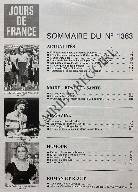 124 PAGES FORMAT 24X33-EN COUVERTURE CHARLES D'ANGLETERRE ET DIANA "LADY DI ELLE A VINGT ANS AUJOURD'HUI"-LE NOUVEAU GOUVERNEMENT L'ACCORD PC PS-L'AMERIQUE A L'ECOUTE DE LA FRANCE/4P-THIBAULT D'ORLEANS:LA LIBERTE/4P-C'EST AUSSI LE TOUR DE FRANCE/HINAULT/BERNAUDEAU/2P/4 PHOTOS-CINQ COMEDIENS EN QUETE D'AUTEUR/DIDIER BOURDON/CONSERVATOIRE D'ART DRAMATIQUE/2P/2 PHOTOS-MARIE JOSE NAT: TROIS FILMS POUR CACHER SA PEINE/4P-LA DUCHESSE N'A PAS APPRECIE/DUCHESSE DE KENT/MC ENROE/5 PHOTOS-ALAIN CHANTE POUR SERGE: AMOUR ANNEE ZERO/GAINSBOURG/CHAMFORT/2P/2 PHOTOS-MARISA: A PARIS, ELLE OUBLIE BARRY LINDON/4P/5 PHOTOS-L'IDEE "FOLLE" DE JACQUES CHANCEL-CETTE "CHARTREUSE DE PARME" QUE VOUS NE CONNAISSEZ PAS ENCORE/4P/5 PHOTOS/MARTHE KELLER/JEAN BABILEE-L'ALBUM DE FAMILLE DE LADY DI/14P PAR CHRISTIAN BRETAGNE-RICHARD ANTHONY: C'EST BON LA FRANCE/6P-SOUS LE PORTRAIT DU PRESIDENT LE FRERE DE JULIEN/2P/3 PHOTOS/GERARD LECLERC/JULIE-CHANTAL GOYA UNE "SCOUT" POUR L'ETE/2P/2 PHOTOS-LEGER ACCROC SUR PREMIERES PAGES