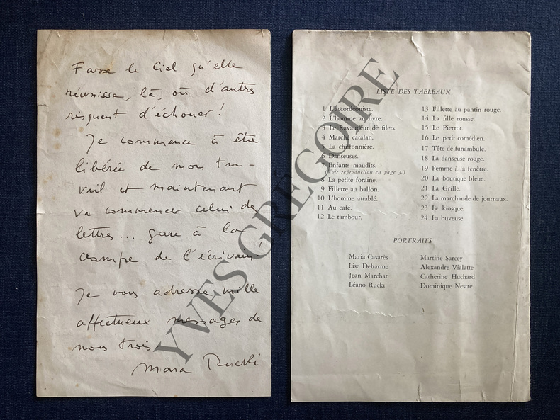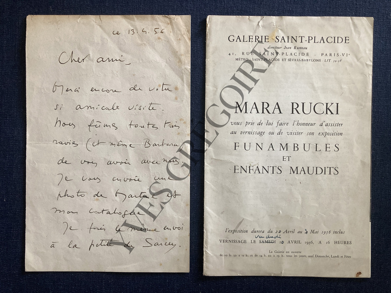 SUR PAPIER FORMAT 13,5 CM X 21 CM-23 LIGNES MANUSCRITES-DATE 13 AVRIL 1956-SIGNATURE-CATALOGUE 4 PAGES FORMAT IN 8-EXPOSITION GALERIE SAINT PLACIDE 41 RUE PLACIDE PARIS VI DU 20 AVRIL AU 3 MAI 1956 "FUNAMBULES ET ENFANTS MAUDITS"-PRESENTATION PAR WALDEMAR GEORGE-ILLUSTRATION-LISTE DES TABLEAUX ET PORTRAITS (CPP4)