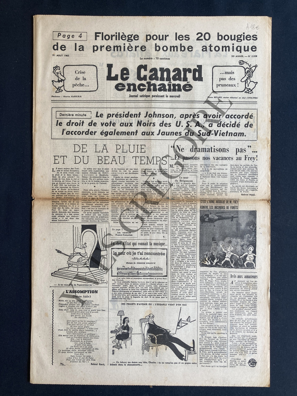 8 PAGES FORMAT 40X60-EN 4 DE COUVERTURE: DESSIN MOITIE DE PAGE PAR MOISAN "LA PISTE AUX DEUX ETOILES (SPECTACLE PERMANENT), CHARLO CIRCUS, LES MEMBRES DU GOUVERNEMENT SUR SCENE, DE GAULLE EN TUTU