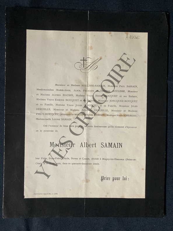 SUR PAPIER FORMAT IN 4-MARGE NOIRE DE 2,5 CM-14 LIGNES-IMPRIMERIE LIEGEOIS SIX A LILLE-LEGERES ROUSSEURS-(CPP4)
