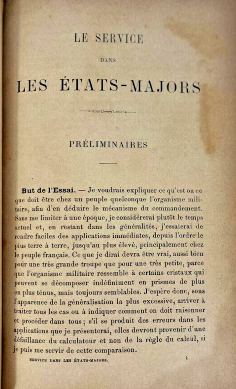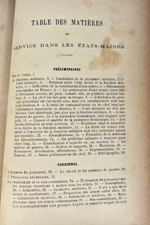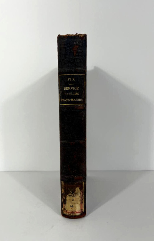 Extérieur de la reliure craquelé, mors fendus de l'extérieur, mais reliure ferme et solide, intérieur entièrement lisible. Ouvrage issu des conférences de l'auteur à l'école de guerre. Livre rare, quasi impossible à trouver.