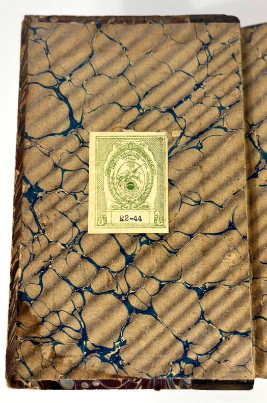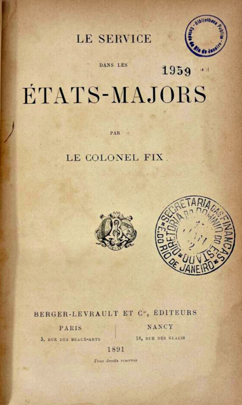 Paris-Nancy, Berger-Levreault & Cie, 1891. In-8, 220 x 145 mm, 587 pp. Livre relié demi-maroquin sombre, dos à faux-nerfs, caisson doré autour du nom d'auteur et titre en doré. Étiquette de bibliothèque en queue de la reliure. Plats jaspés rougeoyants, gardes à motifs beige et bleuté avec étiquette des archives de la bibliothèque au premier contreplat. Tampon de librairie à la page de faux-titre, multiples tampons de bibliothèque publique et notamment de celle du Secrétariat financier de l'État de Rio de Janeiro, Brésil, aux premières pages, ainsi qu'un tampon 1959.