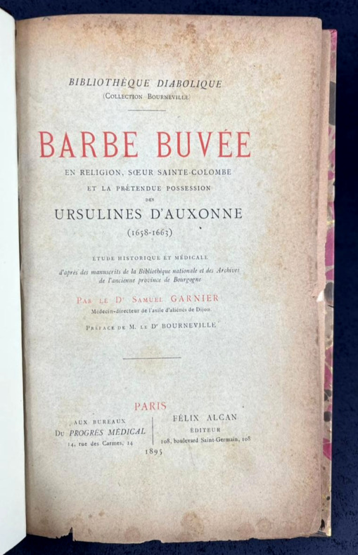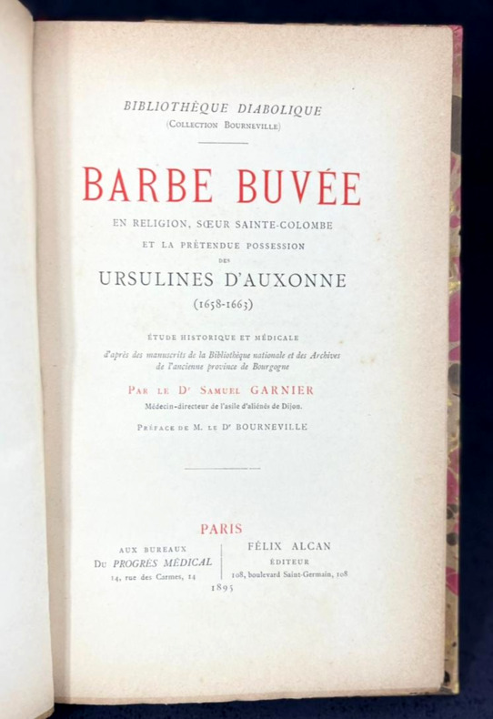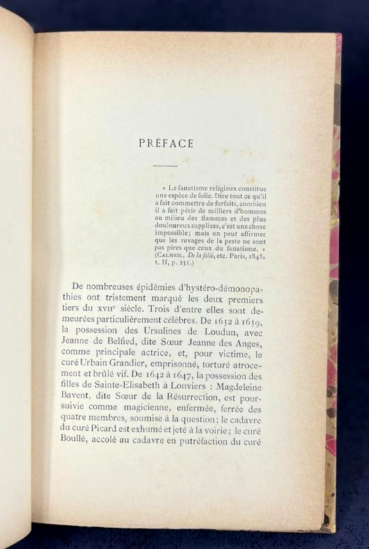 Dorbon 1827. Caillet 4355 : "Curieuse étude sur les maladies des mystiques et sur les épidémies distillées d'hystéro-démonopathie, ou hallucinations diaboliques et génitales qui ont si tristement marqué les deux premiers tiers du XVIIe siècle".