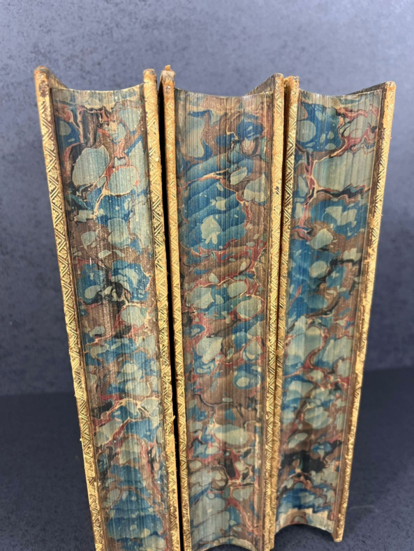 Light rubbing on some of the edges, the hinge of the 1st volume front cover is a bit frail, robust binding, interior is clean and in very good condition. A splendid set in its original intricate binding.