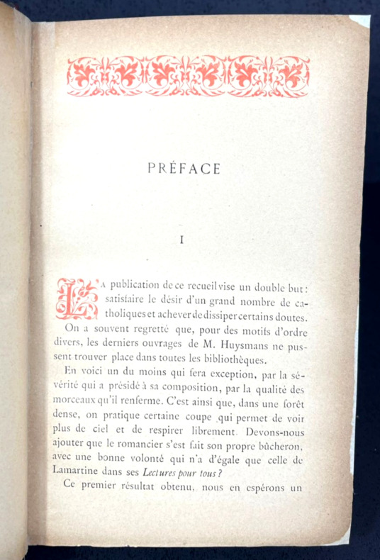 Edition originale sur papier d'édition après 53 exemplaires en grands papiers. Page de titre à la date de 1899, couverture à la date de 1900. Préface de M. L'Abbé A. Mugnier. Pages catholiques puisées dans les différentes œuvres de l'auteur. Petit ex-libris collé sur le faux-titre. Bel exemplaire sans mention d'édition. PRIX PORT ENVOI EN COLISSIMO INCLUS POUR LA FRANCE MÉTROPOLITAINE (Forfait de 5 euros déductible pour une remise en main propre. Nous consulter pour un envoi vers une autre destination).