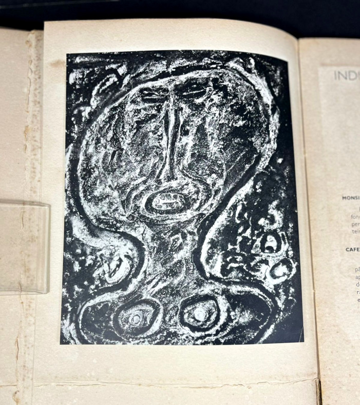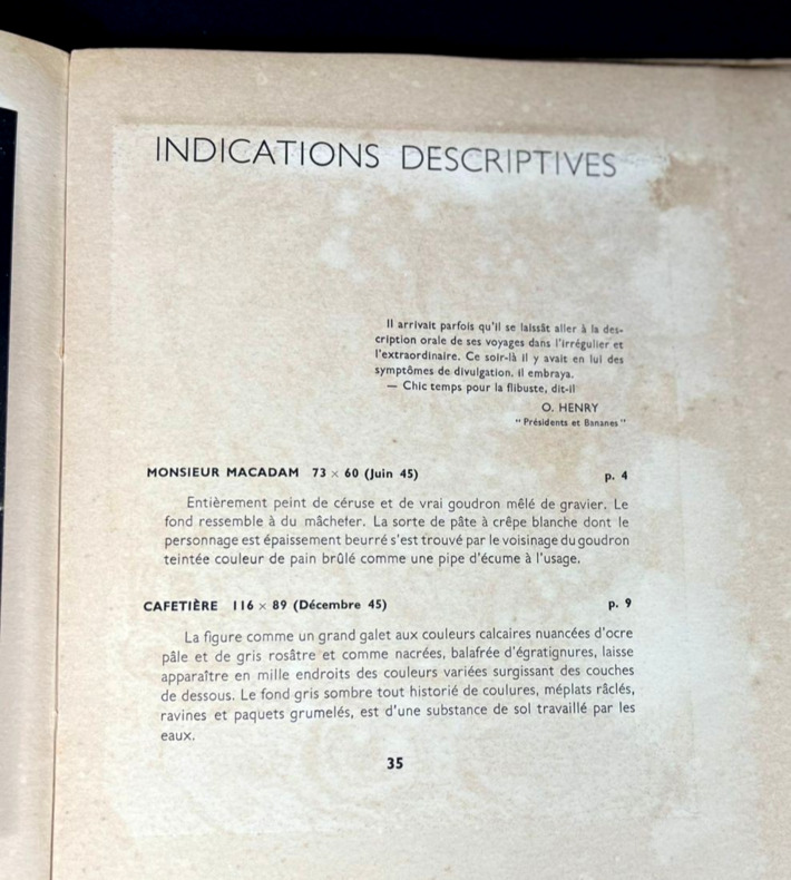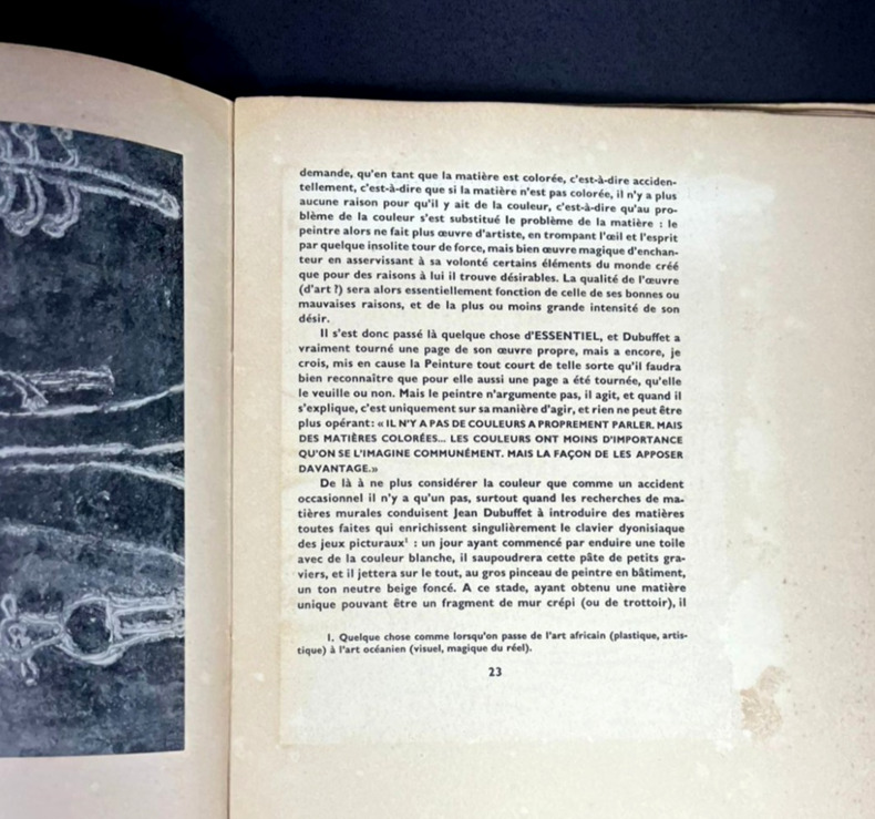Paris Galerie R. Drouin 1946 1 vol. Broché gr. in-8, broché, couverture rempliée arc-en-ciel typographiée en noir, 56 pp. Edition originale illustrée de 32 reproductions in-texte et à pleine page sur des papiers de différentes couleurs, avec légendes narratives. Tirage limité à 730 exemplaires, celui-ci non justifié, mais en très bonne condition.