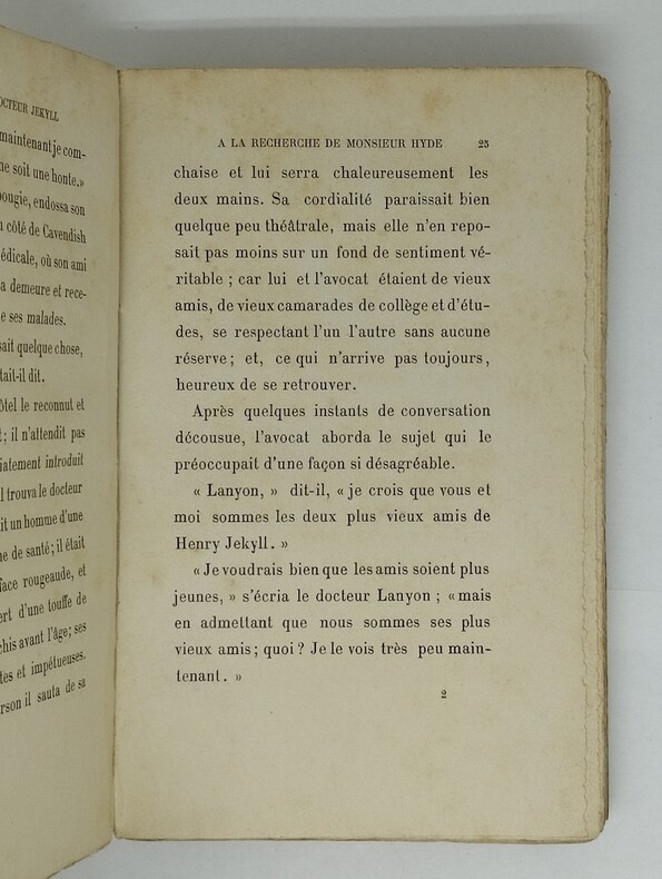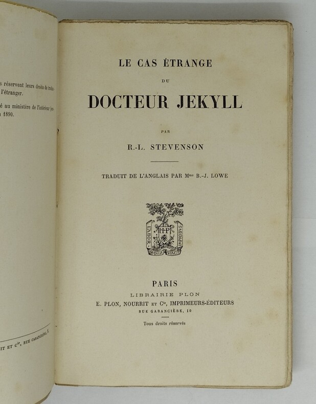 Traduit de l’anglais par Mme B.-J. Lowe. Paris, Plon (1890). Broché. 2 ff., 260 p., 1 ff., catalogue de l’éditeur (2 ff. jaunes), 1 ff. 121×188 mm. Edition originale française, dont il n’a pas été tiré de grand papier. Le roman avait été longuement commenté deux ans avant cette publication dans un article de la Revue des deux Mondes ; des extraits avaient été traduits à cette occasion. Il existe une traduction antérieure en langue française, parue au Canada : d’abord dans la presse, au début de l’année 1887, puis en 1888 au sein d’un recueil de deux textes dont le premier est de Charles Buet. Une autre traduction parut également en 1888, mais cette fois dans une revue italienne. Il semble toutefois qu’il s’agisse plutôt d’une sorte de résumé du récit. L’originale parut quant à elle en 1886 aux Etats-Unis. Menus défauts au brochage, quelques rousseurs, mais exemplaire très satisfaisant, agréable.