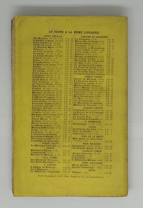 Bibliothèque Reliée Plon sans jaquette avec abeille sur le dos n° 129. Non daté.. In-12. Relié. Etat d'usage, Coins frottés, Coiffe en tête abîmée, Intérieur frais. 253 pages.. . . . Classification Dewey : 840-Littératures des langues romanes. Littérature française