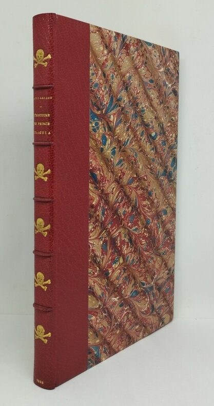 Genève, Droz, 1988. In-8 de XIII pages, (1) ff., 217 pages 154×241 mm. Très beau demi-maroquin rouge signé de Loutrel, dos à nerfs orné d’un décor macabre doré composé d’un crâne reposant sur des ossements, tête dorée. Couverture conservée (y compris le dos). Parfait état. Cet ouvrage, la thèse de l’auteur, est consacré au personnage historique mentionné par Bram Stoker. Il se développe autour du livre populaire Histoire du voïévode Dracula, qui commença de circuler vers 1463 sous forme d’un opuscule imprimé composé de quelques feuillets et orné d’un portrait du « tyran Dracula » ou d’une scène le représentant en train de festoyer devant une forêt de pals et de corps suppliciés. Selon l’auteur, l’origine de ce récit doit être recherchée dans l’action diplomatique de la Cour du roi de Hongrie Mathias Corvin qui, bien qu’allié à Vlad Tepes, l’avait fait arrêter en 1462. Ayant reçu d’importantes avances financières, notamment du pape, pour attaquer le sultan Mahomet II, le roi se devait de justifier la mise à l’écart de celui que les puissances chrétiennes de l’époque considéraient comme un « champion de la croisade antiottomane ». « Les actes horrifiants du personnage étaient présentés selon une énumération qui ne tenait compte d’aucun agencement. Le but poursuivi n’était pas d’informer le lecteur, mais de l’impressionner, de le faire frémir devant la description des supplices de marchands, de bourgeois et de nobles, devant la confiscation de leurs biens, l’incendie de leurs villes ou villages, bref devant les actes insensés d’un tyran sanguinaire et capricieux. » M. Cazacu étudie les sources, l’agencement et la large diffusion de cet opuscule, du XVe au XVIIIe siècle, entre le Rhin et l’Oural, d’une part, la mer du Nord et la Méditerranée orientale d’autre part. La forme sous laquelle il nous est parvenu diffère selon les trois zones géographiques principales où il s’est propagé : l’Empire des Habsbourg, la Russie moscovite et l’Europe du sud-est. Les traductions de différentes versions y figurent.