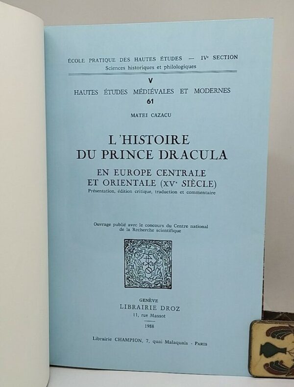 Ecole pratique des Hautes Etudes - IVe section. Sciences historiques et philologiques. V Hautes Etudes médiévale et modernes - 61. " Cet ouvrage propose l'étude des sources, de l'agencement et de la diffusion de l'histoire de Dracula. Il analyse chaque groupe de récits - allemands et russes -" Couv. un brin défraîchie, bon ex. au demeurant. - Frais de port : -France 4,95 € -U.E. 9 € -Monde (z B : 15 €) (z C : 25 €)