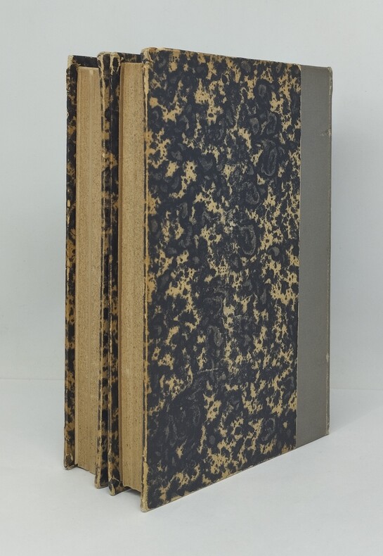 Edition originale française. Hachette, 1885. Deux tomes en deux volumes. Demi percaline. Quelques frottements à la reliure. Dos foncé. Quelques rousseurs au second tome, quelques feuillets mal coupés avec manque marginal de papier pour deux d'entre eux. Feuillets légèrement décalés jusqu'à la page 15, au second tome. Cela étant, l'intérieur est globalement très bien conservé et l'ensemble, agréable.