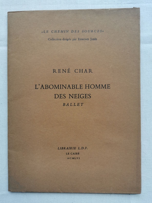 LE CAIRE LIBRAIRIE L.D.F. 1956 Une plaquette in-12° (190 x 150 mm), 18 pp., couverture imprimée rempliée, broché. (traces de mouillures aux couvertures provoquant de faibles marques et une légère décoloration en bordure intérieure, une petite tâche brune en haut de couverture, présence d'une petite auréole jaune sur la dernière page). Édition originale, un des 200 exemplaires numérotés (n° 193).