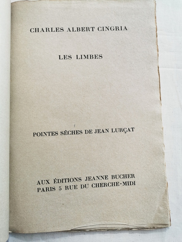 Peyron, Bibliographie de Charles-Albert Cingria 7 - The Artist & The Book 1860-1960, 171 - Skira 210 - Monod 2791. - Edition originale. - No. 44 des 100 ex.num. sur papier vergé antique de Montval (après 1 ex. sur Vieux Japon et 10 sur Japon Impérial). - Les gravures le plus surréaliste dans l'oeuvre de Lurçat. - Belle présentation.