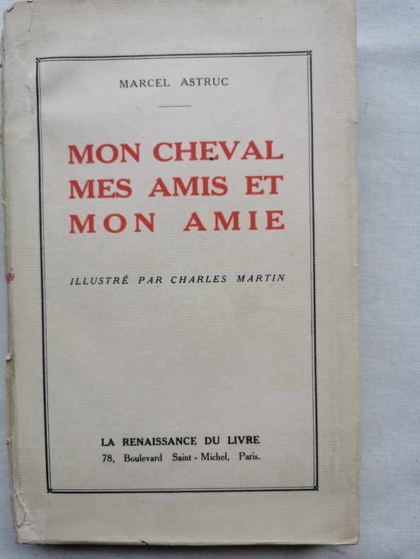 Paris La Renaissance du Li 1921 In-8, bradel, plats en plexiglas transparent laissant apparaître chacun un collage original différent réalisé sur un papier marbré gris bleuté, avec des découpes de papier rose évoquant des fers à cheval ou faites dans un papier orné de fantassins de la guerre de 1914-1918; dos de maroquin gris bleuté; doublures et gardes de papier beige avec des fibres blanches, couverture imprimée. Etui (Daniel-Henri Mercher). Edition originale, illustrée par Charles Martin de 20 dessins gravés au trait et rehaussés au pochoir, dont 16 hors-texte et 4 sur double page. Tirage unique limité à 500 exemplaires numérotés sur papier pur fil Lafuma. Bel exemplaire.