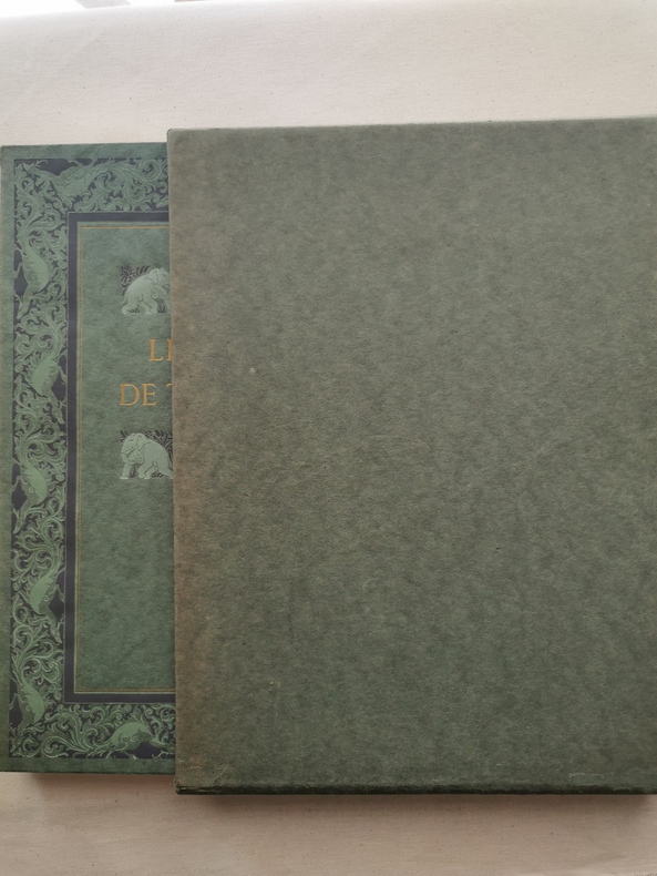 Paris, Piazza, L"Édition d'Art H. Piazza, 20 Octobre 1920. Un volume in-4 (24 x 31 cm), 114 pp plus table des illustrations. Relié en plein maroquin vert bronze, plat supérieur orné d'un éléphant de chagrin bleu, dos à 5 nerfs, auteur, titre, millésime et éditeur dorés, gardes de papier peigné, étui, couvertures conservées. (Reliure signée LN Potin).