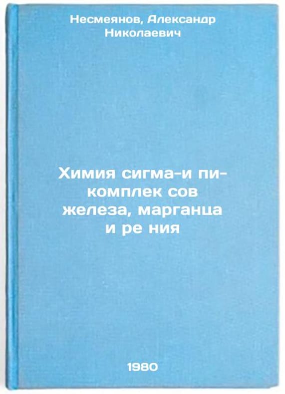 In Russian. Nesmeyanov, Alexander Nikolaevich. Sigma-and-pi chemistry of iron, manganese, and ronium. Khimiya sigma-i pi-komplek sov zheleza, margantsa i re niya. In Russian /Sigma-and-pi chemistry of iron, manganese, and rhenium . All images are for identification of editions only. Several books of the same edition may be available. Please feel free to request photos of available books. SKU1000022