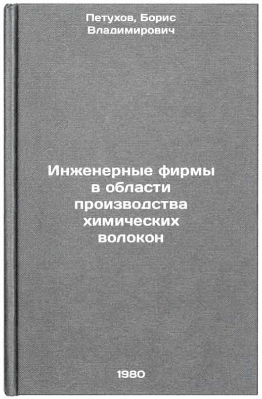 In Russian. Petukhov, Boris Vladimirovich. Engineering Firms in the Field of Chemical Fibres Production. Moscow: NIITEKhim, (-th c. Region). Inzhenernye firmy v oblasti proizvodstva khimicheskikh volokon. In Russian /Chemical Fiber Engineering Firms . All images are for identification of editions only. Several books of the same edition may be available. Please feel free to request photos of available books. SKU1001266