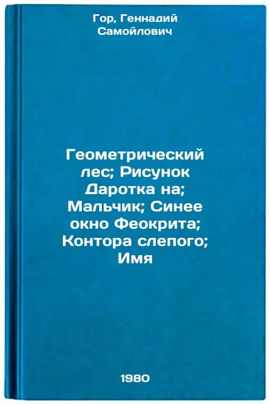 "In Russian. Gore, Gennady Samoilovich. Geometric forest; Drawing a Gift on; Boy; Blue window of Feokrit; Office of the blind; Name: Lenizdat,. Geometricheskiy les; Risunok Darotka na; Mal'chik; Sinee okno Feokrita; Kontora slepogo; Imya. In Russian /Geometric forest; Drawing a Gift on; Boy; Blue window of Theocritus; Office of the blind; Name . All images are for identification of editions only. Several books of the same edition may be available. Please feel free to request photos of available books. SKU1002509"