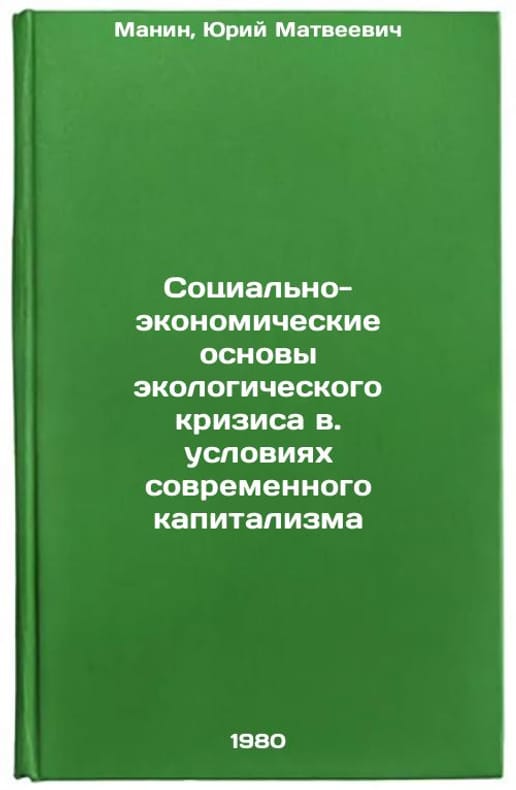 In Russian. Manin, Yuri Matveevich. Socio-economic foundations of the ecological crisis in the conditions of modern capitalism. Minsk: o Znanie BSSR,. Sotsial'no-ekonomicheskie osnovy ekologicheskogo krizisa v. usloviyakh sovremennogo kapitalizma. In Russian /The Socio-Economic Underpinnings of the Environmental Crisis in Modern Capitalism . All images are for identification of editions only. Several books of the same edition may be available. Please feel free to request photos of available books. SKU1002718