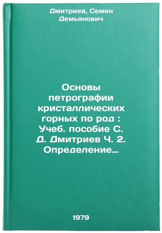 In Russian. Dmitriev, Semyon Demyanovich. Basics of crystalline rock petrography by genus: Textbook by S. D. Dmitriev Part 2. Determination of rock-forming minerals under a microscope in grinds. Yakutsk: Yakutsk State University, Osnovy petrografii kristallicheskikh gornykh po rod: Ucheb. posobie S. D. Dmitriev Ch. 2. Opredelenie porodoobrazuyushchikh mineralov pod mikroskopom v shlifakh/Basics of crystalline rock petrography by genus: Textbook by S. D. Dmitriev Part 2. Determination of rock-forming minerals under a microscope in grinds In Russian. All images are for identification of editions only. Several books of the same edition may be available. Please feel free to request photos of available books. SKU1006321