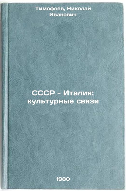 In Russian. Timofeev, Nikolai Ivanovich. USSR - Italy: cultural ties. Moscow: Thought,. All images are for identification of editions only. Several books of the same edition may be available. Please feel free to request photos of available books. SKU1010085