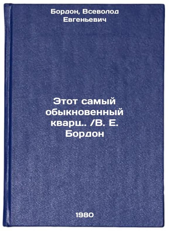In Russian. Bordon, Vsevolod Evgenievich. This very ordinary quartz. / V. E. Bordon. Minsk: Science and Technology,. Etot samyy obyknovennyy kvarts. .V. E. Bordon. In Russian /This very ordinary quartz. W. E. Bordon . All images are for identification of editions only. Several books of the same edition may be available. Please feel free to request photos of available books. SKU1010331