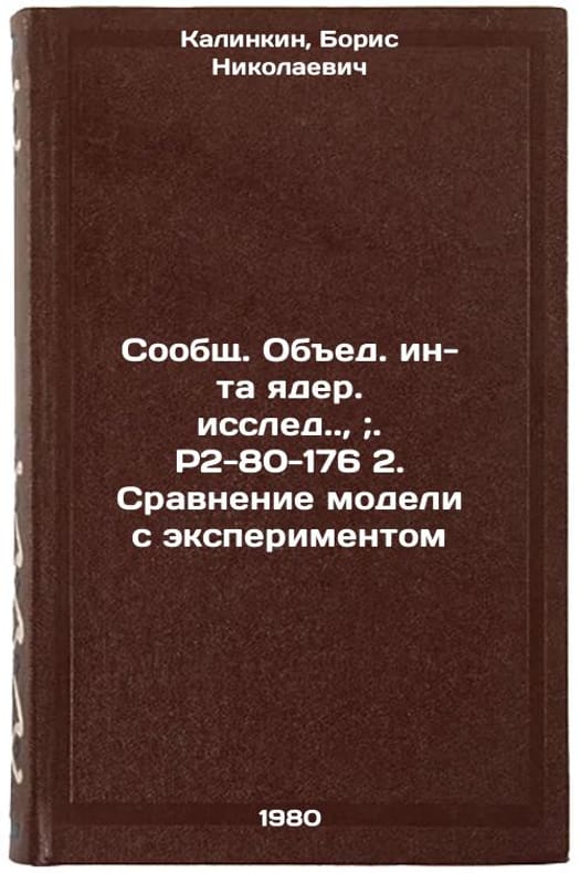 "In Russian. Kalinkin, Boris Nikolaevich. Comparison of the Model with the Experiment. Dubna: JINR,. Soobshch. Obed. in-ta yader. issled.., ;. R2-80-176 2. Sravnenie modeli s eksperimentom. In Russian /Comparison of Model with Experiment.., ;. P2-80-176 . All images are for identification of editions only. Several books of the same edition may be available. Please feel free to request photos of available books. SKU1010441"
