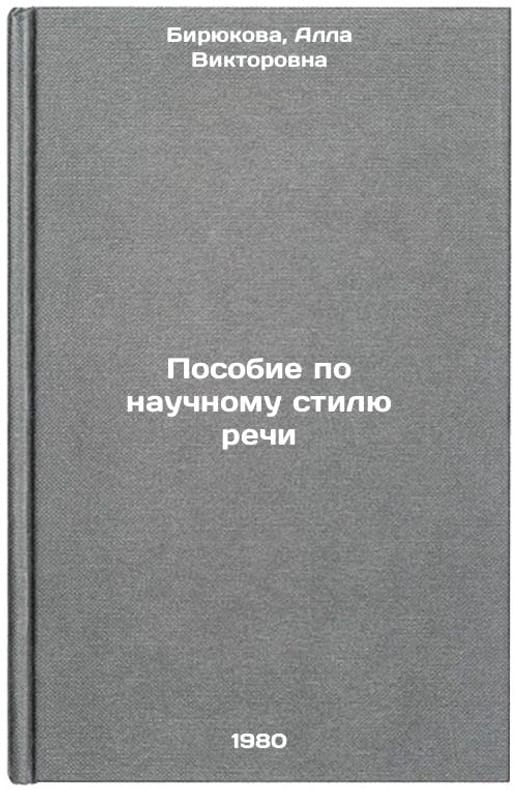 In Russian. Biryukova, Alla Viktorovna. A manual on the scientific style of speech. Moscow: Russian Language,. Posobie po nauchnomu stilyu rechi. In Russian /Handbook on the scientific style of speech . All images are for identification of editions only. Several books of the same edition may be available. Please feel free to request photos of available books. SKU1011574