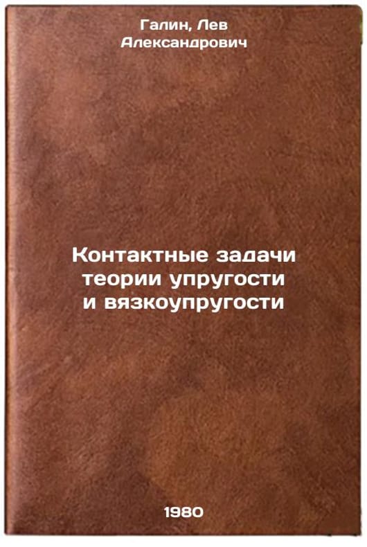 In Russian. Galin, Lev Alexandrovich. Contact problems of the theory of elasticity and viscoelasticity. Moscow: Science,. Kontaktnye zadachi teorii uprugosti i vyazkouprugosti. In Russian /Contact problems of the theory of elasticity and viscoelasticity . All images are for identification of editions only. Several books of the same edition may be available. Please feel free to request photos of available books. SKU1013296