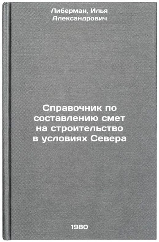 In Russian. Liberman, Ilya Alexandrovich. Guide to budgeting for construction in the conditions of the North. L.: Stroyizdat: Leningrad Division,. Spravochnik po sostavleniyu smet na stroitel'stvo v usloviyakh Severa. In Russian /Guide to Construction Budgeting in the North . All images are for identification of editions only. Several books of the same edition may be available. Please feel free to request photos of available books. SKU1013657
