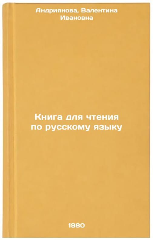 In Russian. Andriyanova, Valentina Ivanovna. Book for reading in Russian. Tashkent: Ukituvchi,. All images are for identification of editions only. Several books of the same edition may be available. Please feel free to request photos of available books. SKU1013824