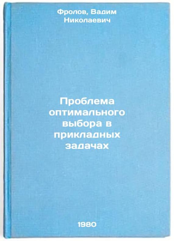 In Russian. Frolov, Vadim Nikolaevich. The problem of optimal choice in applied tasks. Voronezh: Voronezh University Publishing House,. Problema optimal'nogo vybora v prikladnykh zadachakh. In Russian /The Challenge of Optimal Choice in Applications . All images are for identification of editions only. Several books of the same edition may be available. Please feel free to request photos of available books. SKU1014029