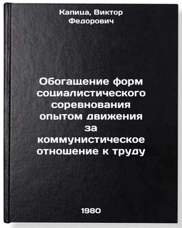 In Russian. Kapitsa, Viktor Fedorovich. Enrichment of forms of socialist competition with the experience of the movement for a communist attitude to labor. Kyiv: o Knowledge of the Ukrainian SSR,. Obogashchenie form sotsialisticheskogo sorevnovaniya opytom dvizheniya za kommunisticheskoe otnoshenie k trudu. In Russian /Enrichment of forms of socialist competition with the experience of the communist labor movement . All images are for identification of editions only. Several books of the same edition may be available. Please feel free to request photos of available books. SKU1014170