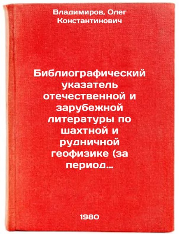 In Russian. Vladimirov, Oleg Konstantinovich. Bibliographic index of domestic and foreign literature on mining and mining geophysics (for the period from 1966 to 1978). Bibliograficheskiy ukazatel' otechestvennoy i zarubezhnoy literatury po shakhtnoy i rudnichnoy geofizike (za period s 1966 po 1978 gg.). In Russian /Bibliographic index of domestic and foreign literature on mining and mining geophysics (for the period from 1966 to 1978) . All images are for identification of editions only. Several books of the same edition may be available. Please feel free to request photos of available books. SKU1014784