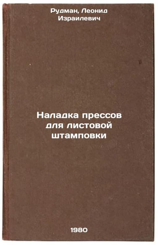 In Russian. Rudman, Leonid Izrailevich. Adjustment of presses for sheet stamping. Moscow: Mechanical engineering,. Naladka pressov dlya listovoy shtampovki. In Russian /Setting up sheet-stamping presses . All images are for identification of editions only. Several books of the same edition may be available. Please feel free to request photos of available books. SKU1015009