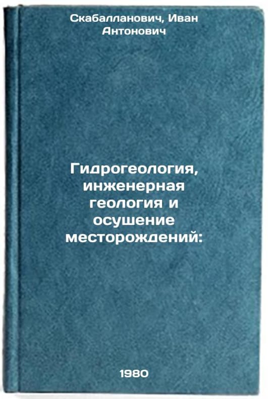 In Russian. Skaballanovich, Ivan Antonovich. Hydrogeology, Engineering Geology and Depletion of Deposits. M.: Nedra,. Gidrogeologiya, inzhenernaya geologiya i osushenie mestorozhdeniy:. In Russian /Hydrogeology, engineering geology and drainage: . All images are for identification of editions only. Several books of the same edition may be available. Please feel free to request photos of available books. SKU1015016