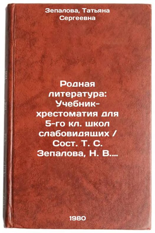 In Russian. Zepalova, Tatyana Sergeevna. Native Literature: A textbook-textbook for the 5th school for the visually impaired / Compiled by T. S. Zepalova, N. V. Kolokoltsev, N. Ya. Meshcheryakova Part 2. M.: Enlightenment,. Rodnaya literatura: Uchebnik-khrestomatiya dlya 5-go kl. shkol slabovidyashchikh. Sost. T. S. Zepalova, N. V. Kolokol'tsev, N. Ya. Meshcheryakova Ch. 2. In Russian /Native Literature: A textbook-textbook for the 5th school for the visually impaired. Compiled by T. S. Zepalov, N. V. Kolokoltsev, N. Ya. Meshcheryakova Part 2 . All images are for identification of editions only. Several books of the same edition may be available. Please feel free to request photos of available books. SKU1015132