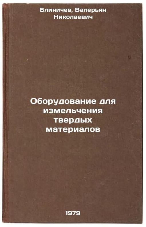 In Russian. Blinichev, Valerian Nikolaevich. Equipment for crushing solid materials. Ivanovo: IKhTI, 1979 Oborudovanie dlya izmelcheniya tverdykh materialov/Solid material shredder In Russian. All images are for identification of editions only. Several books of the same edition may be available. Please feel free to request photos of available books. SKU7651492