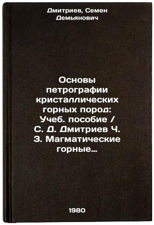 In Russian. Dmitriev, Semyon Demyanovich. Basics of crystalline rock petrography: Textbook / S. D. Dmitriev Part 3. Magmatic rocks. Yakutsk: Yakutsk State University,. Osnovy petrografii kristallicheskikh gornykh porod: Ucheb. posobie. S. D. Dmitriev Ch. 3. Magmaticheskie gornye porody. In Russian /Basics of crystalline rock petrography: Textbook. S. D. Dmitriev Part 3. Magmatic rocks . All images are for identification of editions only. Several books of the same edition may be available. Please feel free to request photos of available books. SKU1015518