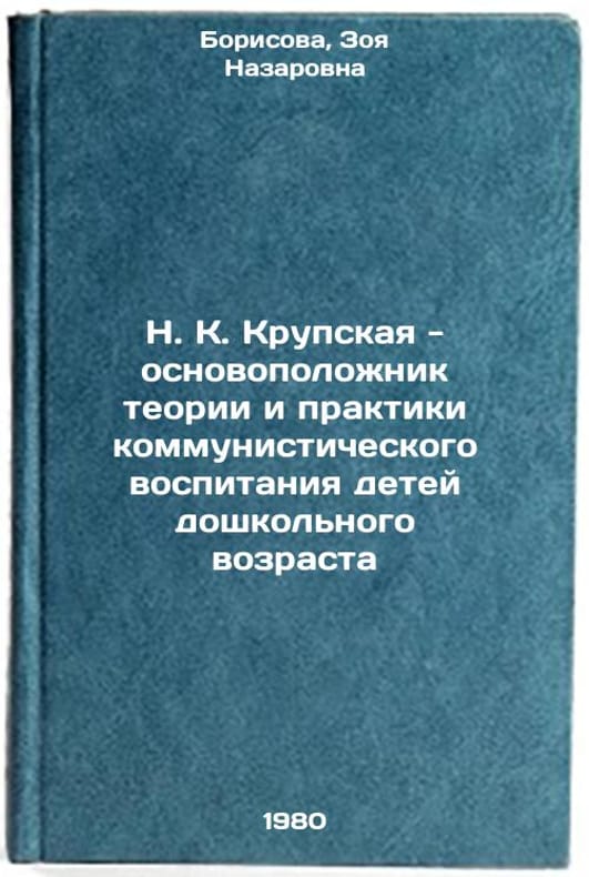 In Russian. Borisova, Zoya Nazarovna. N. K. Krupskaya - the founder of the theory and practice of communist education of preschool children. Kyiv: Vyshcha School,. N. K. Krupskaya - osnovopolozhnik teorii i praktiki kommunisticheskogo vospitaniya detey doshkol'nogo vozrasta. In Russian /N. K. Krupskaya, the founder of the theory and practice of communist upbringing of preschool children . All images are for identification of editions only. Several books of the same edition may be available. Please feel free to request photos of available books. SKU1016190