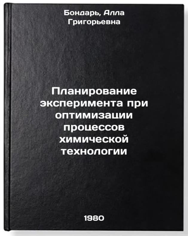 In Russian. Bondar, Alla Grigorievna. Planning an experiment while optimizing the processes of chemical technology. Kyiv: Visca school,. Planirovanie eksperimenta pri optimizatsii protsessov khimicheskoy tekhnologii. In Russian /Planning an Experiment in Optimizing Chemical Processes . All images are for identification of editions only. Several books of the same edition may be available. Please feel free to request photos of available books. SKU1016405