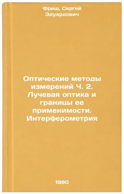 In Russian. Frisch, Sergey Eduardovich. Optical Methods of Measurement Part 2. Radiation Optics and the Limits of its Applicability. Interferometry. Opticheskie metody izmereniy Ch. 2. Luchevaya optika i granitsy ee primenimosti. Interferometriya. In Russian /Optical Measurement Methods Part 2. Radiation Optics and the Limits of its Applicability. Interferometry . All images are for identification of editions only. Several books of the same edition may be available. Please feel free to request photos of available books. SKU1016512