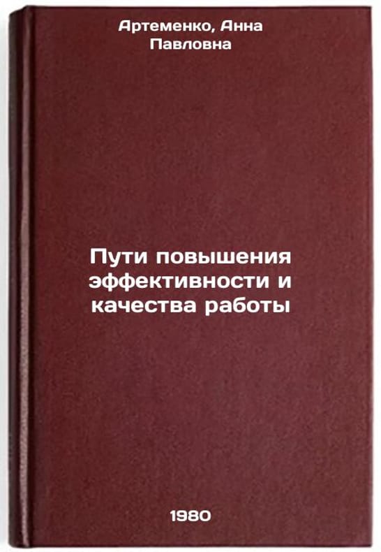 In Russian. Artemenko, Anna Pavlovna. Ways to increase efficiency and quality of work. Kyiv: o Knowledge of the Ukrainian SSR,. Puti povysheniya effektivnosti i kachestva raboty. In Russian /Ways to improve efficiency and performance . All images are for identification of editions only. Several books of the same edition may be available. Please feel free to request photos of available books. SKU1016906