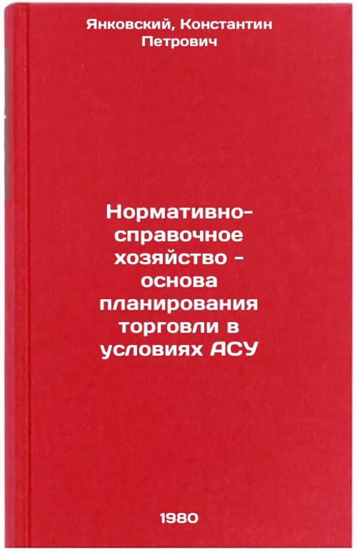 In Russian. Yankovsky, Konstantin Petrovich. Regulatory and reference economy - the basis of trade planning in the ACS context. Normativno-spravochnoe khozyaystvo - osnova planirovaniya torgovli v usloviyakh ASU. In Russian /Regulatory and reference economy - the basis for trade planning in an ASG context . All images are for identification of editions only. Several books of the same edition may be available. Please feel free to request photos of available books. SKU1018183